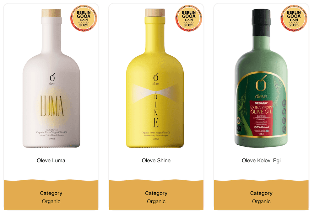 Read moreWe are thrilled to announce that three of our exceptional extra virgin olive oils—Luma, Shine (FS-17), and Kolovi PGI—have been honored with prestigious Gold Awards at the Berlin Global Olive Oil Awards (GOOA) 2025. This recognition is a testament to our unwavering commitment to quality, innovation, and the art of olive oil production.
